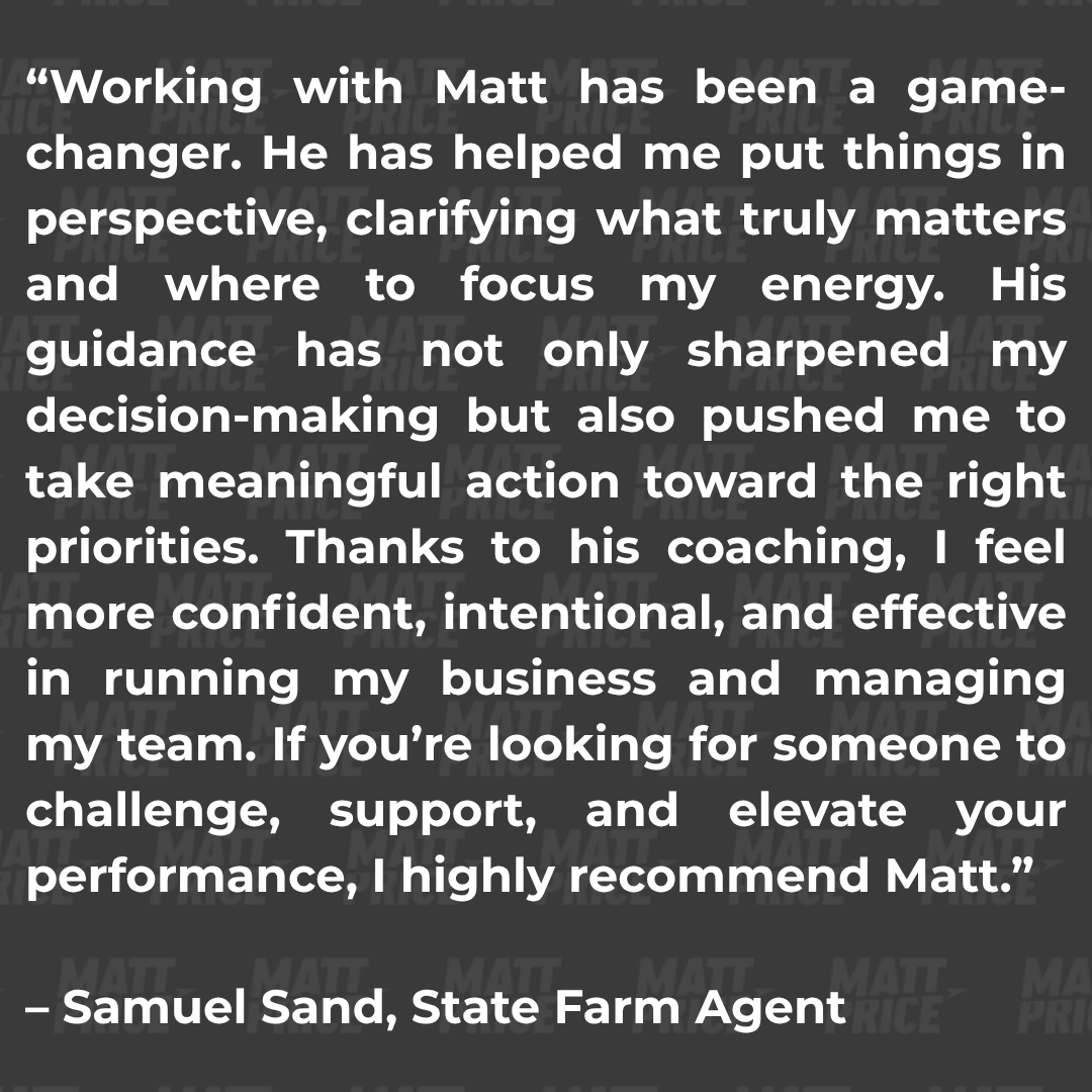 After 25 years in leadership — including running his own State Farm agency — Matt knows what it takes to lead under pressure -- and he also knows what it feels like to lose yourself in the process.